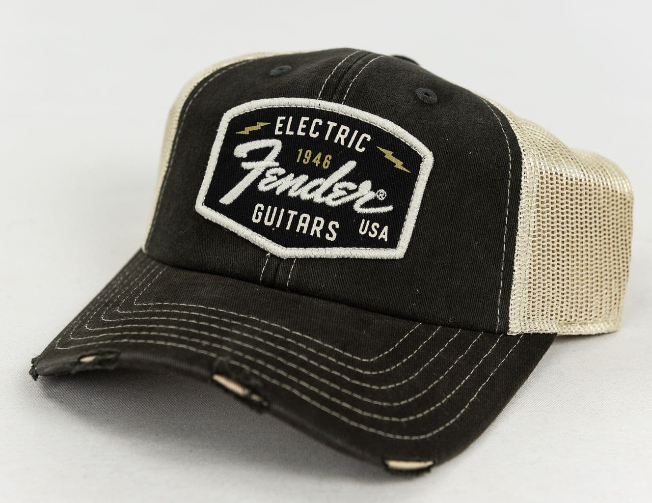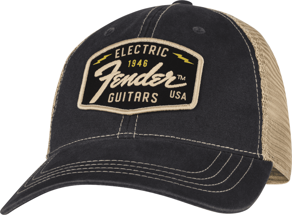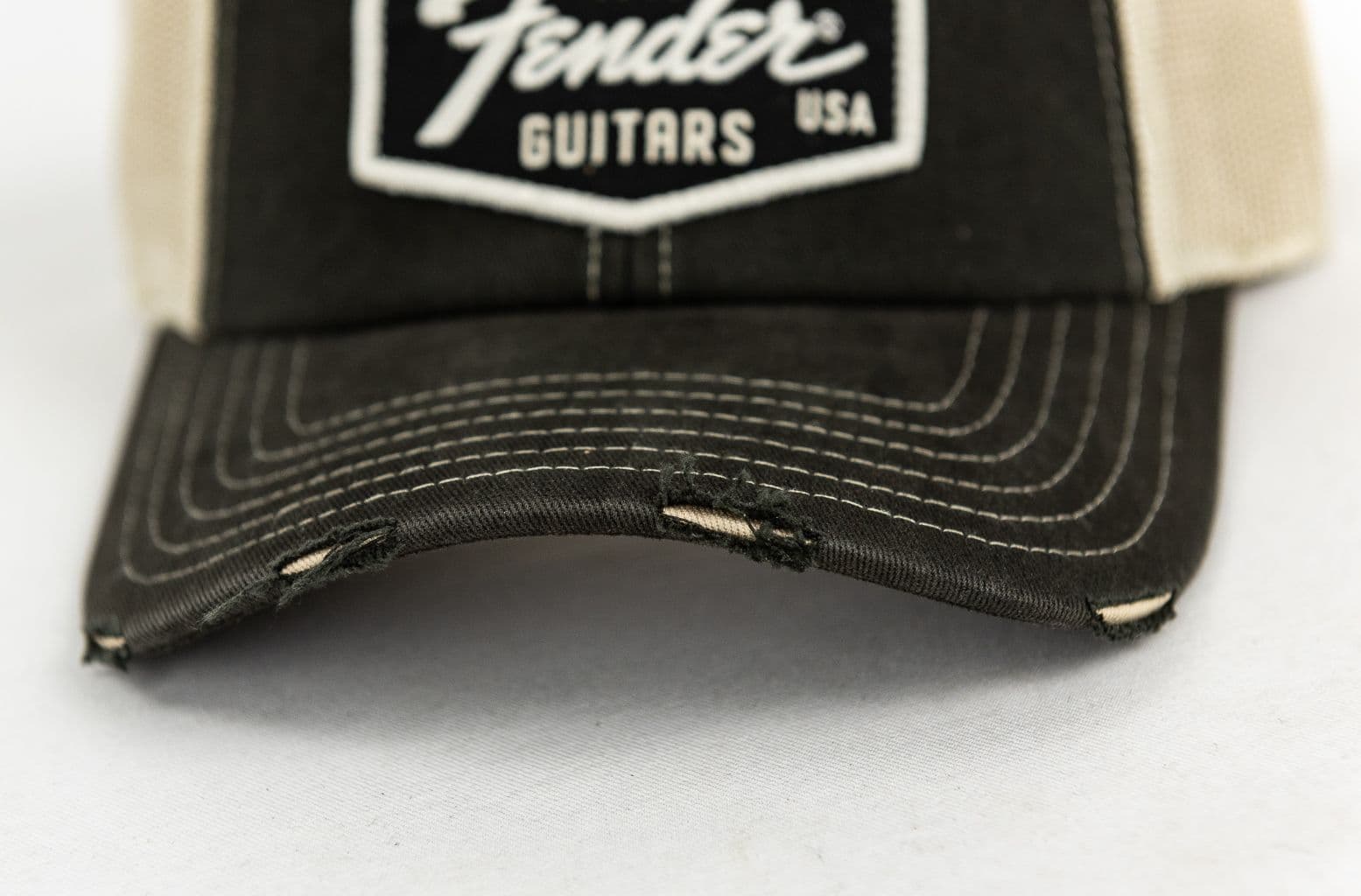 Fender Transition Logo Patch Hat, Black/Stone, Worn Look Peak, One Size